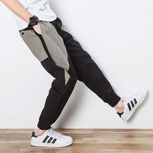 撞色拼接哈伦裤男加肥加大码潮胖子宽松束脚裤日系九分裤小脚春夏