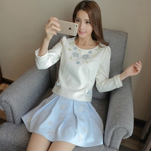 2017春夏季女装新款小清新两件套ATAR绣花短上衣搭配半身裙套装裙