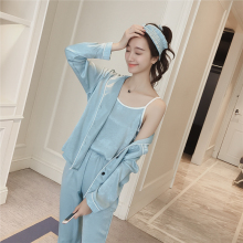 D春夏季新款长袖开衫睡衣套装 吊带背心短裤长裤家居服七件套2042
