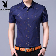 花花公子夏季短袖衬衫男士翻领时尚修身薄款衬衫中青年新款男装潮