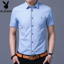 花花公子短袖衬衫男士修身免烫休闲衬衣夏季中青年男士短袖衬衫
