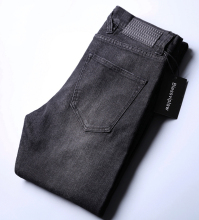 意大利风格 舒适微弹牛仔面料 商务休闲男士修身款黑灰牛仔裤