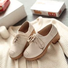 2017春秋个性英伦学院风新款女单鞋圆头系带潮流补丁中跟粗跟女鞋