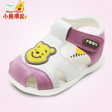 迪士尼宝宝鞋包头凉鞋女学步鞋软底小熊维尼童鞋1-3岁皮凉鞋夏季