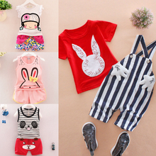 2017新款女宝宝夏装0-1-2-3-4岁女童短袖套装韩版纯棉婴幼儿童装