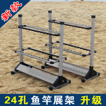 黑色磨砂鱼竿展架渔具展示架24孔不伤竿渔具架子铝合金鱼杆摆放架