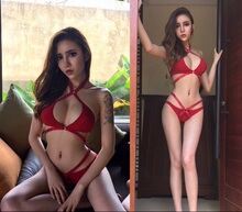LINA实拍海边沙滩温泉度假风性感女神交叉挂脖比基尼泳衣游泳套装