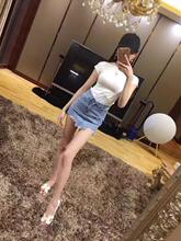 LINA实拍2017夏季新款包身短袖T恤上衣+撕破牛仔裙半身裙套装女装
