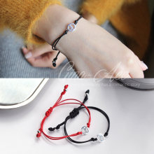 韩国代购S925纯银红绳黑绳权志龙笑脸手链手绳闺蜜情侣女友礼物