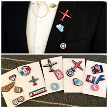 韩国小香风条纹小飞机涂鸦云朵邮票徽章组合胸针别针套装配饰品女