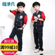 童装秋装卫衣加绒套装儿童运动服中大男童秋季长袖棒球开衫两件套