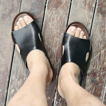 DOGEXI英伦夏季真皮凉鞋男透气休闲大码沙滩鞋男46码47码48码