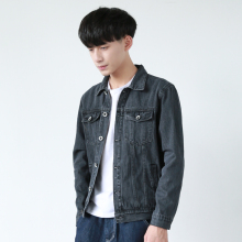 春季日系复古水洗做旧纯色短款修身牛仔夹克上衣外套青少年男装潮