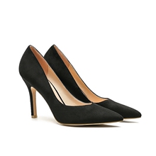 2017新品经典款OL黑色尖头超高跟鞋细跟浅口性感单鞋女绒面大小码