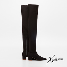 xcollection16秋冬新品超长过膝大腿靴尖头粗跟长靴超显瘦包腿靴
