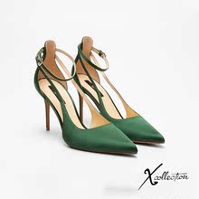 xcollection17春夏经典款超细跟尖头浅口真丝真皮高跟鞋时尚大牌