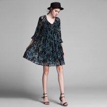 新款夏 欧美风 飘逸仙V领假两件 炒色植绒a宽松中长款蕾丝连衣裙