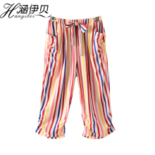 涵伊贝 儿童哈伦裤人棉睡裤夏七分裤男女童家居裤薄料空调裤