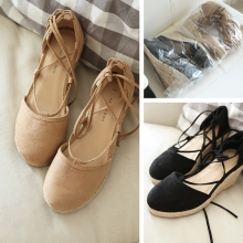 n*w lo*k 如履平地 交叉绑带麻底圆头坡跟鞋 0.78KG