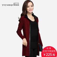 亿羊纯羊毛撞色宽松中长款外套针织开衫加厚保暖风衣女YD14259