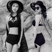 韩国泳衣女三件套比基尼高腰小胸聚拢分体显瘦性感泳装温泉游泳衣