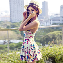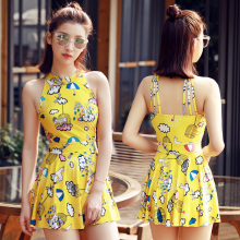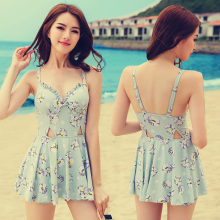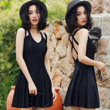 沙滩韩国性感挂脖泳衣女 连体裙式遮肚显瘦大码露背温泉游泳衣