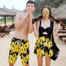 情侣泳衣 新款分体泳衣女遮肚显瘦高腰泡温泉沙滩裤男士游泳衣