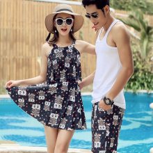 情侣泳衣女 2017新款连体裙式遮肚显瘦温泉度假沙滩男游泳裤套装