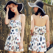 韩国新款连体裙式泳衣女 大小胸聚拢显瘦遮肚保守性感保守游泳衣