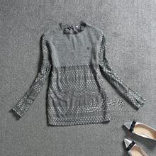 欧洲站2015秋冬装新款欧货范半高领上衣长袖T恤蕾丝修身打底衫女