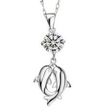 保证925纯银 瑞士钻海豚项链 双豚戏珠女士项链 生日礼物