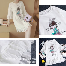 日韩可爱荷叶边下摆白色睡裙休闲显瘦半裙外穿睡衣两用淑女家居服