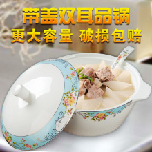 锦晟唐山骨瓷大号品锅带盖双耳汤碗欧式汤盆大汤锅家用大汤碗陶瓷