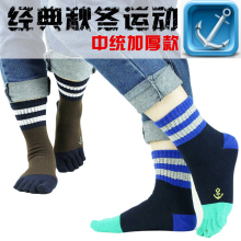 运动男士五指袜纯棉秋冬加厚中筒 袜子男中邦 男棉袜五趾