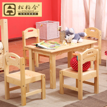 松柏合 儿童实木餐桌椅组合 小户型儿童学习桌 松木家具一桌四椅