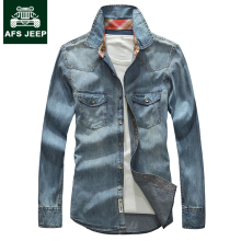 战地吉普长袖牛仔衬衫男大码男装薄款男士休闲衬衣春秋款男式外套
