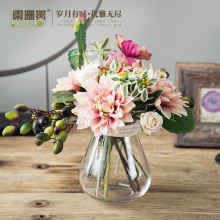 贵妃玫瑰仿真花艺整体套装 小马蹄莲玻璃花瓶摆件 假花绢花家居