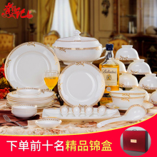 碗盘瓷器套装 韩式骨瓷小资家用餐具套装景德镇金边礼品套碗餐具