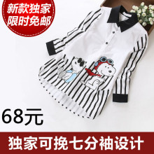 女大童衬衫春装韩版童装儿童纯棉条纹上衣女童长袖衬衣春秋款2017