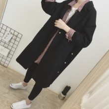 大萌家。韩国单 复活款~宽松休闲长款水洗做旧口袋风衣外套工装女