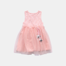女童无袖连衣裙中小童网纱公主裙儿童夏季背心裙立体星星丝带裙子