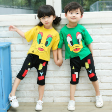 男女童套装夏装儿童短袖七分裤两件套2017新款宝宝1休闲卡通2-3岁
