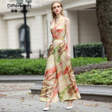 帝弗润驰印花真丝连体裤2017夏季新款OL气质阔腿裤桑蚕丝宽松长裤