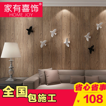 家有喜饰 做旧卧室木板温馨壁纸现代中式有图案压花卷客厅PVC墙纸
