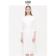 桑蚕丝真丝衬衫式连衣裙USE2017夏复古翻领连衣裙七分袖大码女装