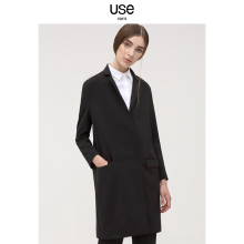 宽松茧型外套USE2017春季新款欧美简约黑色弹力翻驳领中长款外套