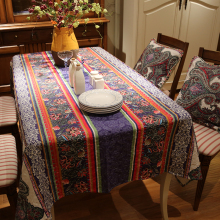 中式民族风全棉布艺桌布条纹系防滑水洗餐桌布高档茶几布尺寸定做