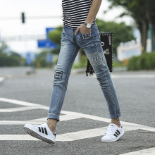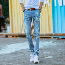青少年牛仔裤 男春夏休闲薄款直筒长裤破洞修身小脚裤韩版男裤潮