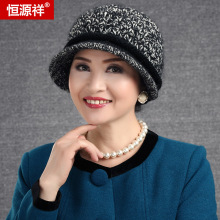 恒源祥中老年手工针织羊毛帽子秋冬季保暖加厚毛线帽护耳女老人帽