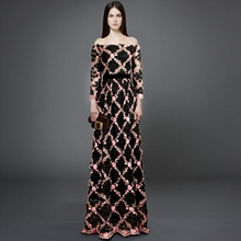 立体花朵复古刺绣花露肩收腰拖地宴会晚礼服长裙连衣裙2017早春新